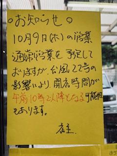 10月9日(木)は、その暴風圏に入るかどうか微妙な感じではありますが、様子を見ながら営業を始めたいと考えております。